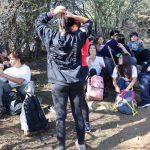 Luego de unos minutos llegó el primer desafío, subir a la siguiente estación con los ojos vendados. Los estudiantes de séptimo básico comenzaron a cubrir sus ojos y afirmarse de una cuerda siguiendo solamente las instrucciones de alumnos de tercero medio, quienes actuaron como asesores y guías de sus compañeros.